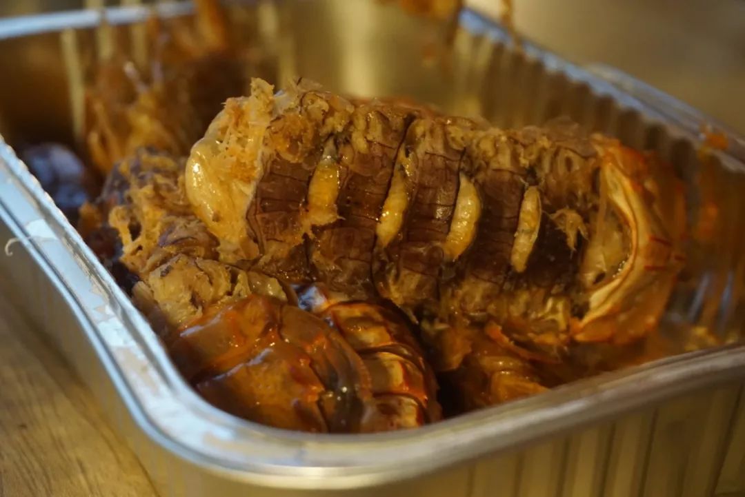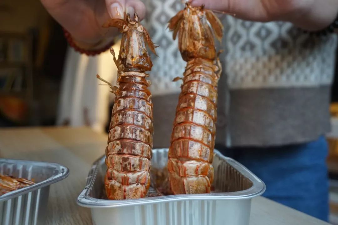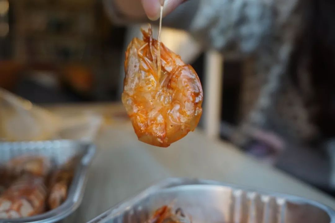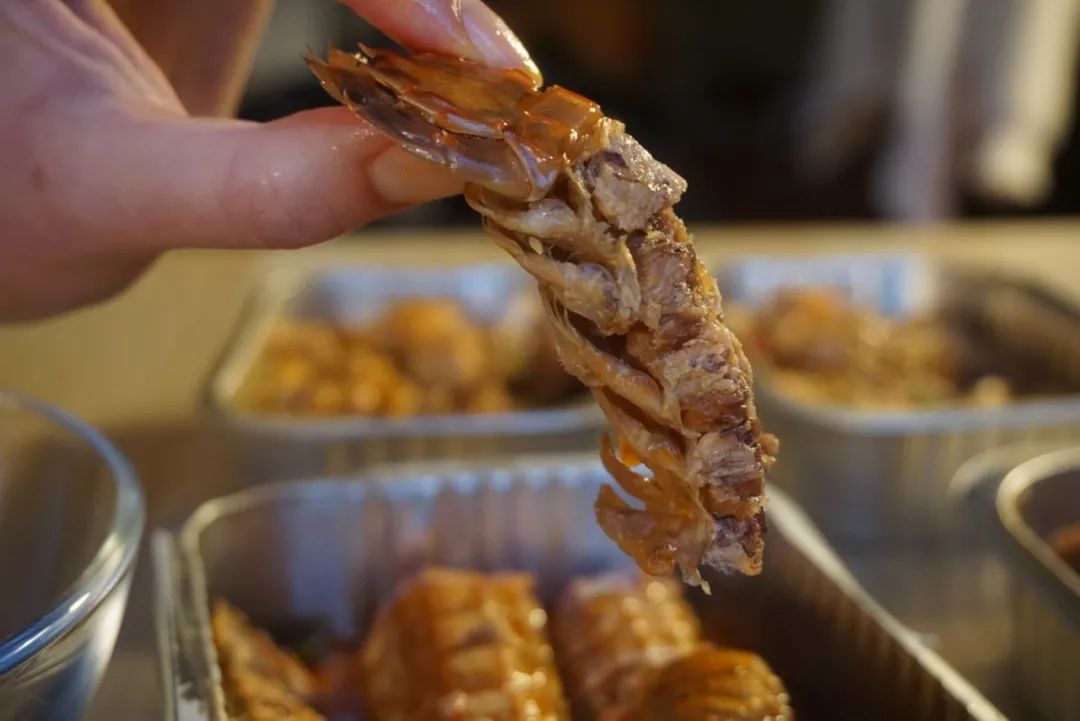 在醬汁中浸潤了一段時間,晶瑩的蝦肉洗飽了湯汁,咬一口能感覺到很有嚼勁。