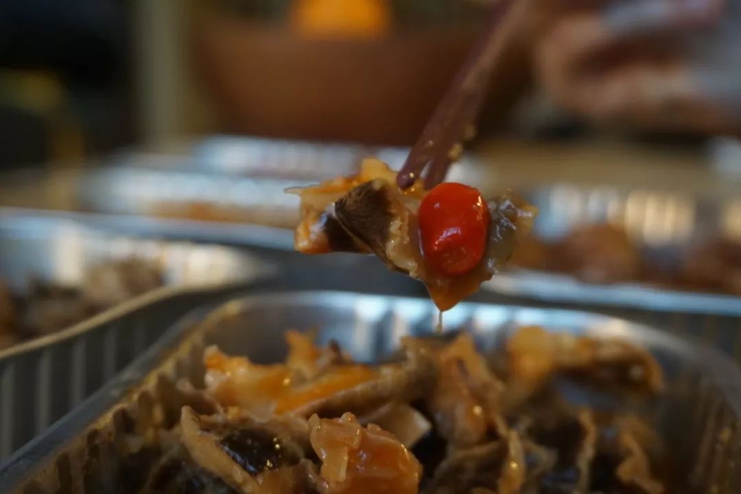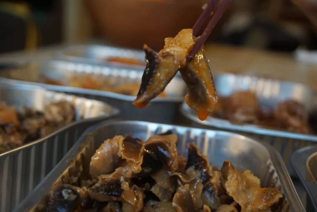 本場測評的最后一款黃金鮑肉,本來大家已經(jīng)吃的半飽了,但嘗了一口后紛紛又把筷子伸向了碗里。