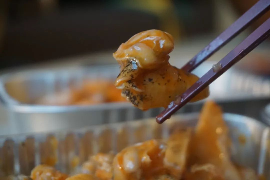 裹著湯汁的魷魚咬起來嘎嘣脆,一口一個的停不下來。